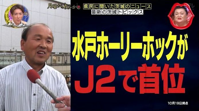 日テレ「月曜から夜ふかし」の茨城インタビューで水戸ホーリーホックが県民ニュースに