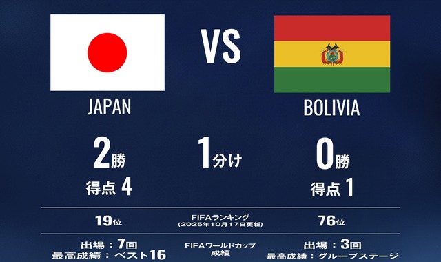 日本vsボリビア 試合記録