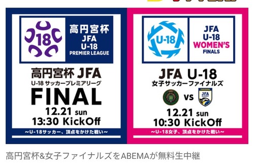 男女U-18の日本一を決める男女2大ファイナル ABEMAで無料生中継! 田中美南&北川ひかる、松木安太郎が解説