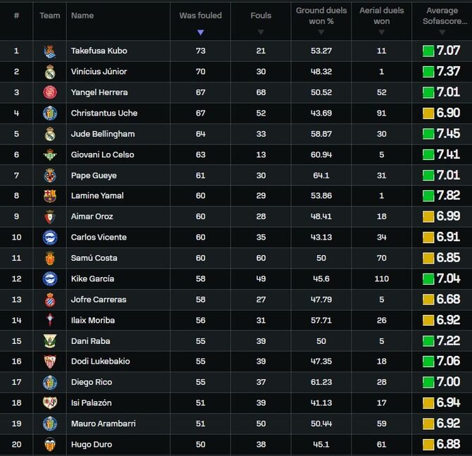 【朗報】Rソシエダ久保建英さん、あんまり取ってもらえないのに被ファール数ヴィニシウス追い越しリーガNO1にwwwwwww